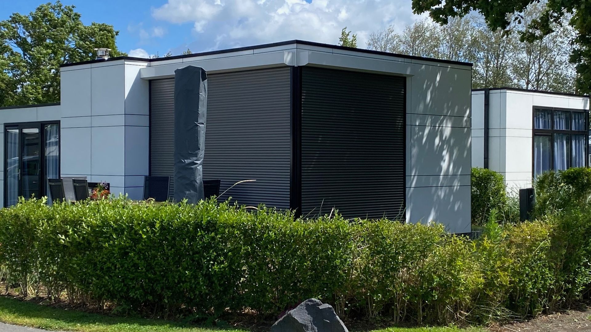 ...mit geschlossenen Rolläden